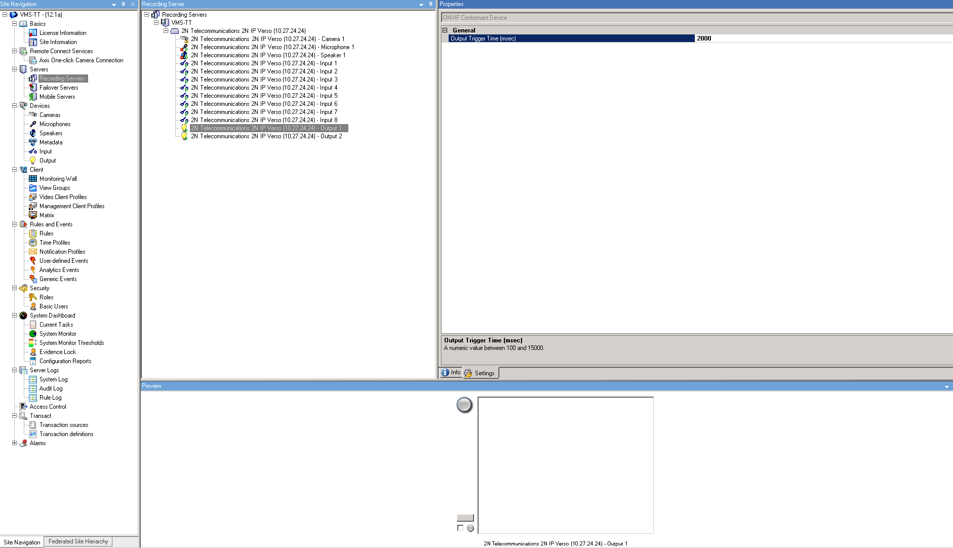 In the Siveillance VMS Management Client you can set Output Trigger Time for your Outputs.