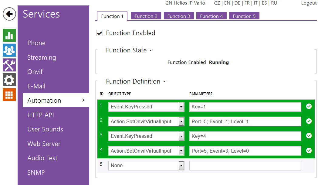 - The event KeyReleased is generated immediatelly after the event KeyPressed at 2N® Helios IP Vario.