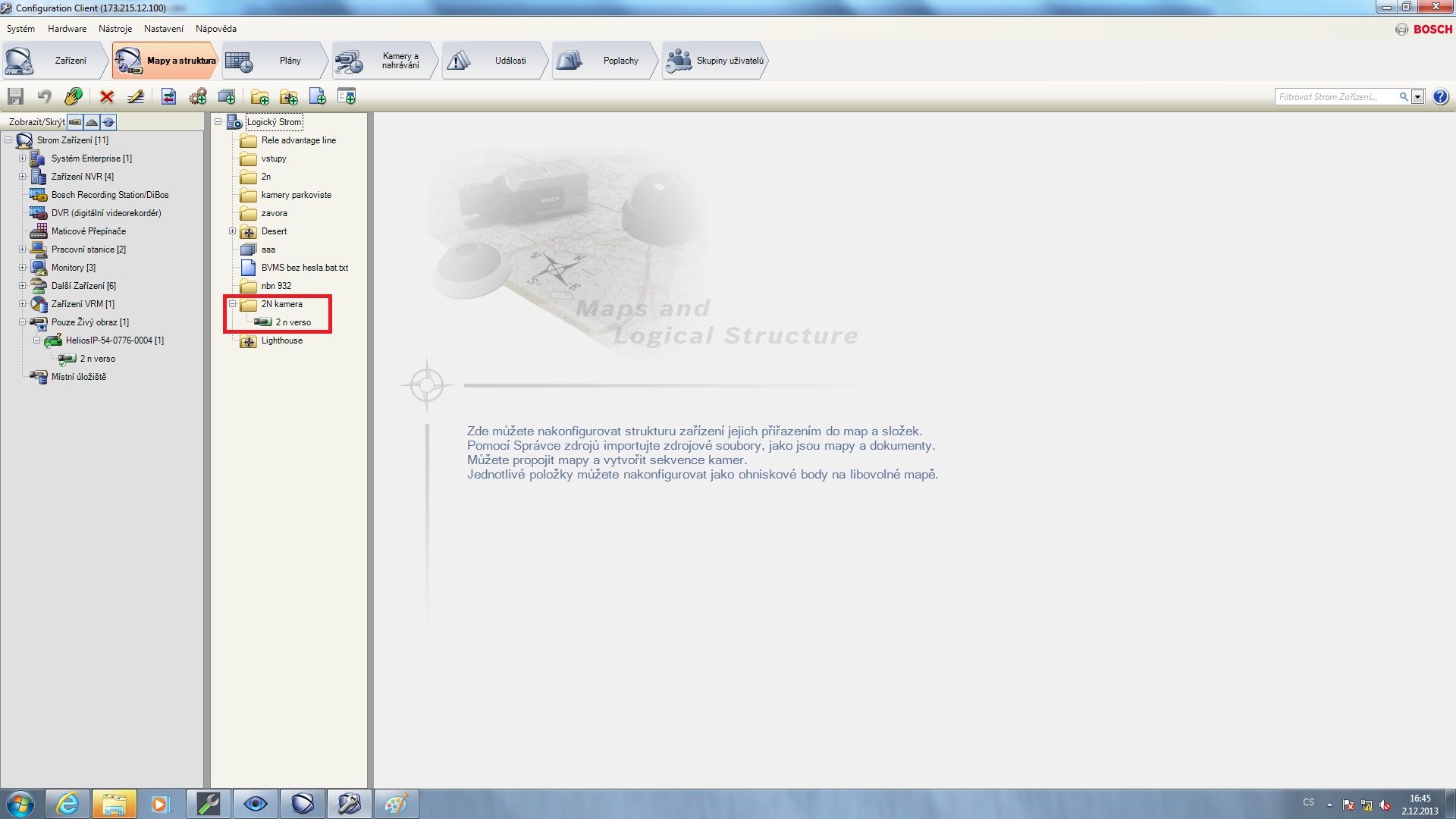 Toto FAQ v několika základních krocích popisuje, jak lze integrovat vrátník 2N® Helios IP do VMS systému (video-monitorovací software) firmy Bosch. Tohoto je možné dosáhnout díky protokolu ONVIF (konkrétně ONVIF profil S). Protokol ONVIF propojuje dohromady výrobce kamer, VMS systémů, úložišť pro nahrávaná videa a přístupových systémů. S ohledem na vrátník 2N® Helios IP je toto velice důležité, jelikož ve své firmě můžete mít jedno komplexní řešení (bez ohledu na výrobce), díky němuž uvidíte video ze všech připojených kamer v daném objektu a tudíž i z vrátníku 2N® Helios IP!