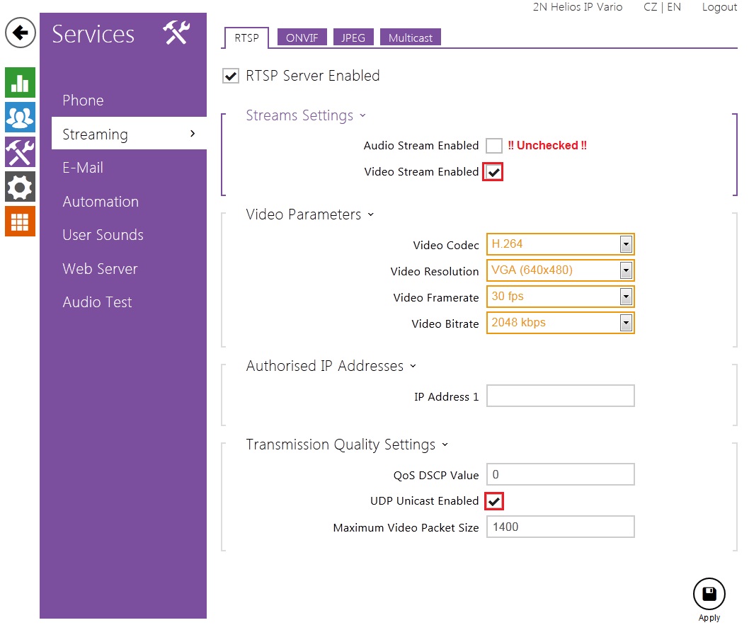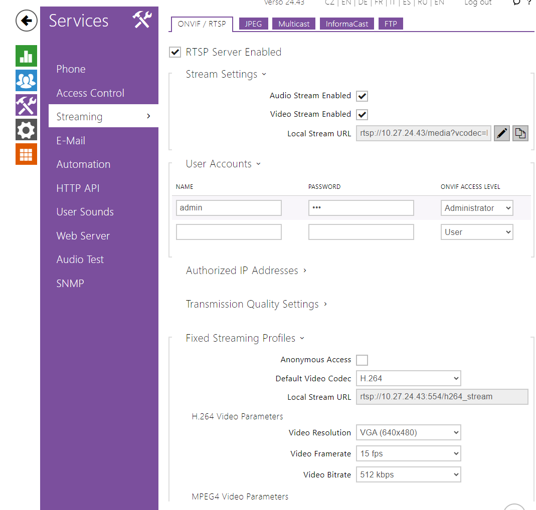 2N IP Intercom Settings