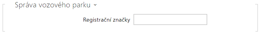 Registrační značky – nastavuje registrační značky vozidel daného záznamu v adresáři. Záznamu je možné přiřadit více registračních značek oddělených čárkami (maximálně 20). Zadané registrační značky jsou využity ve funkci rozpoznávání registračních značek z obrazu externí kamery (pro více informací viz Interoperability manuál). Jedna registrační značka může mít maximálně 10 znaků. Délka zadaného řetězce je omezena na 255 znaků.