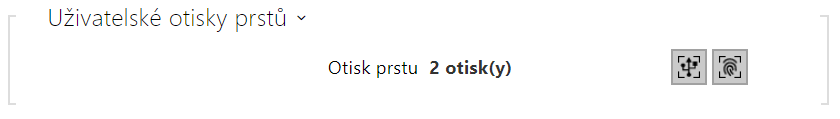 Otisky prstu – zobrazuje počet nastavených otisků prstů, nastavit lze až 2 různé otisky prstů. Tato sekce se zobrazuje pouze při přítomnosti modulu Biometrické čtečky.