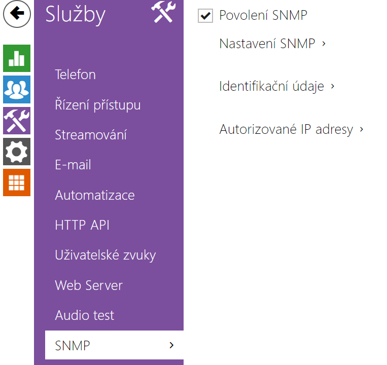2N LTE interkomy integrují funkcionalitu umožňující vzdálený dohled interkomů v sítí pomocí protokolu SNMP.