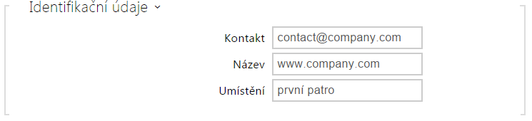 - Kontakt – umožňuje zadat kontakt na správce zařízení (např. jméno, e-mail apod.)