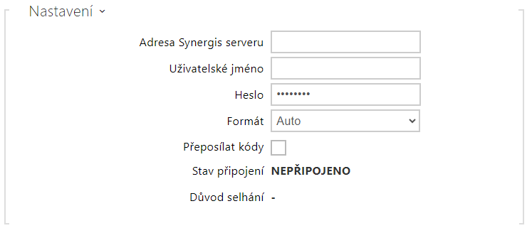 - Adresa Synergis serveru – IP adresa nebo doménové jméno Synergis Serveru.