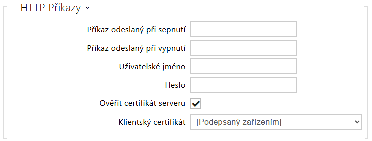 - Heslo – nastavuje heslo pro HTTP příkazy odeslané při aktivaci a deaktivaci spínače. Vyžadováno pouze v případě, že je vyžadována autentizace.