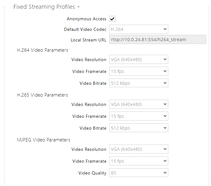 Here configure the simplest way of video streaming: JPEG/HTTP and MJPEG/HTTP. Send the following GET address query to download images from the intercom: