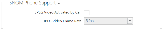 - JPEG video frame rate – set the frame rate or time periods for camera snapshot downloading by Snom 820/870 phones.