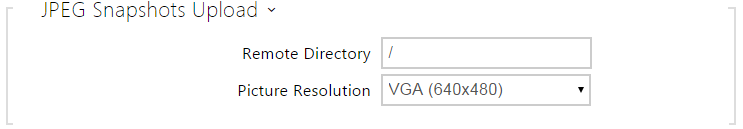 Here define access to the FTP(S) server where images from internal/external cameras can be stored in the JPEG format and selected resolution. The image filename includes the image taking date and time. Images are stored on the FTP server either automatically (periodically or at the call start) or via automation using Action.UploadSnapshotToFTP.