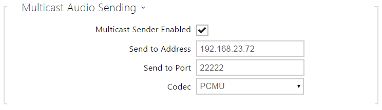 - Multicast sender enabled – enable RTP packet sending to the selected multicast address and port.