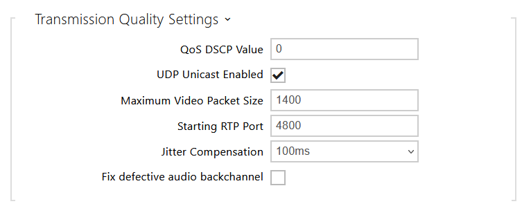 - Starting RTP Port – set the starting local RTP port in the range of the length of 60 ports to be used for audio and video transmissions. The default value is 4800 (i.e. the used range is 4800–4859).