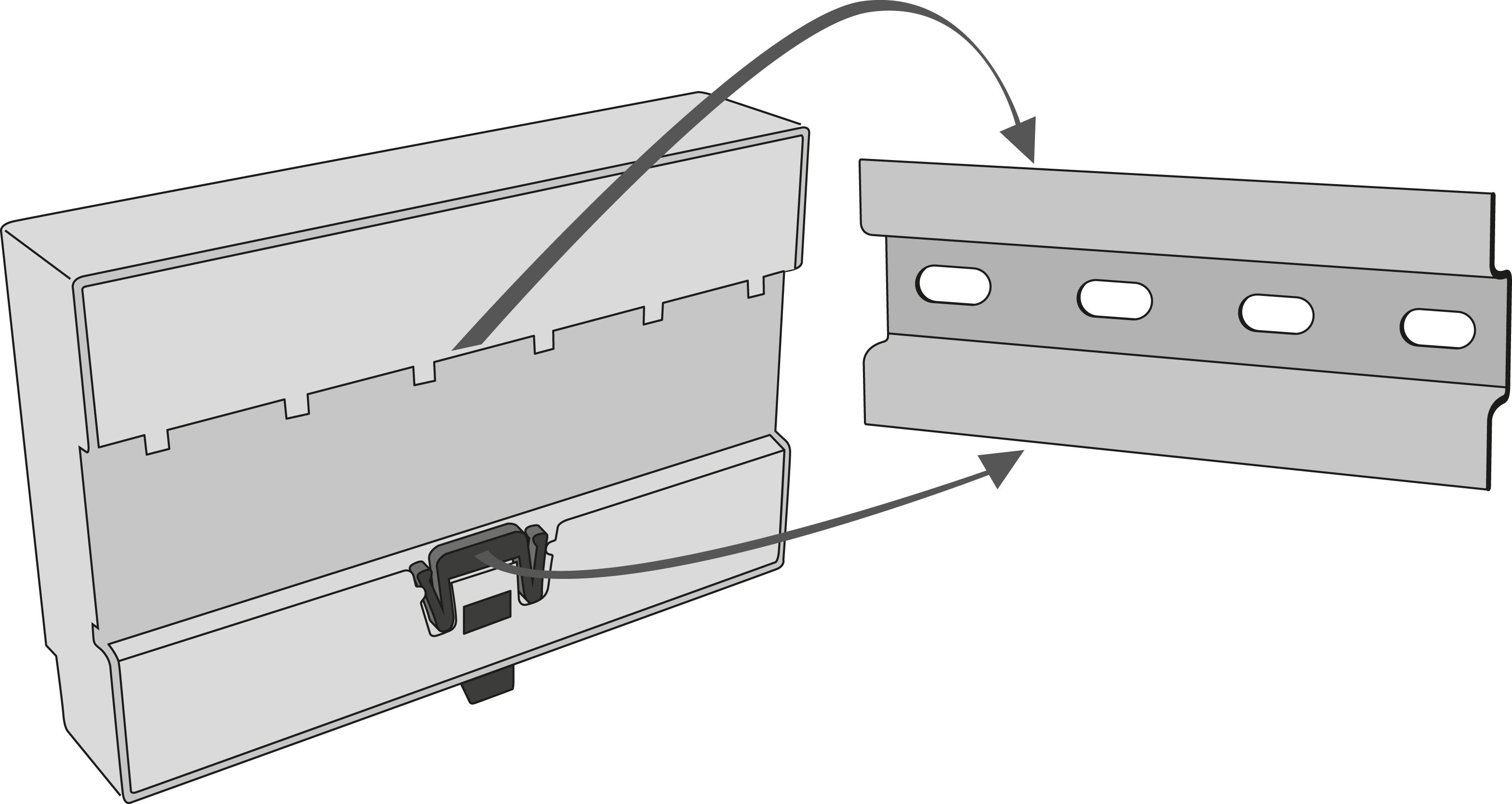 Zařízení je možné přimontovat na standardní DIN lištu TS 35. Minimální doporučená délka DIN lišty je 14 cm.