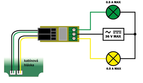 Externí piktogramy se připojují do konektorů 7 a 8 na hlásce kabiny.