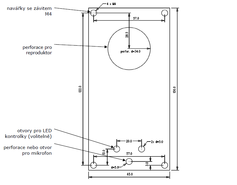 - Panel musí být připraven pro instalaci, minimálně zde musí být perforace pro reproduktor.