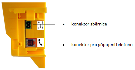 Hláska je vybavena jedním konektorem pro připojení sběrnice. Druhý konektor RJ-11 slouží pro připojení sluchátka. Oba konektory se nacházejí pod bočními dvířky.