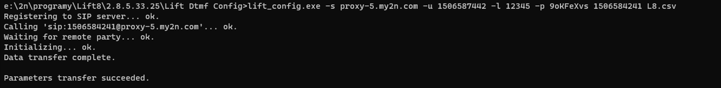 Pro dokončení programování 2N Lift8 zařízení je třeba spustit příkazový řádek ve složce s výše zmíněnými soubory. Příkaz pro spuštění je: