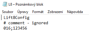 Vytvořte si textový soubor, kde bude uveden seznam telefonních čísel 2N Lift8 zařízení, která se budou programovat – na každý řádek uveďte jedno číslo.