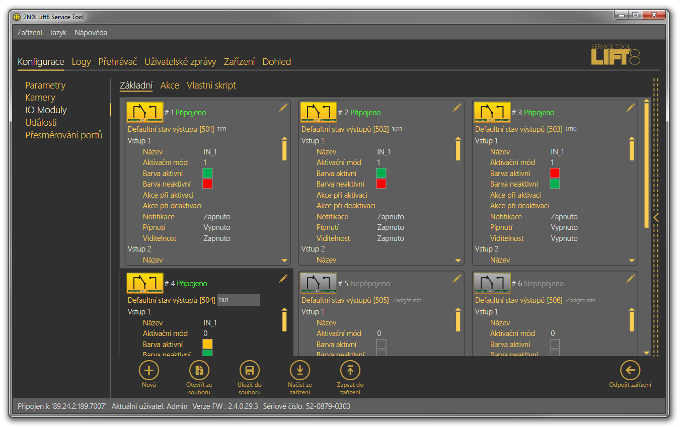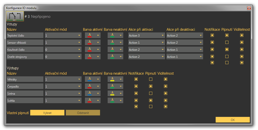 Okno Konfigurace IO modulu