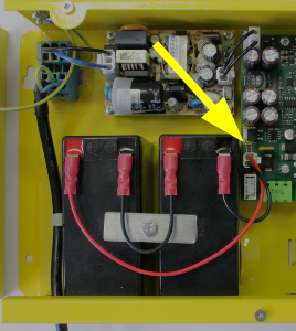 - Po konci zkoušky opět propojte akumulátory se základní deskou pomocí FASTON kabelu. Dodržte polaritu zapojení.
