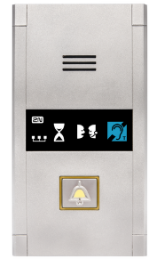Audio unit electronics for installation in an elevator cabin with a 1.5 mm stainless steel cover in the anti-vandal version. The stainless steel cover includes the required pictograms.