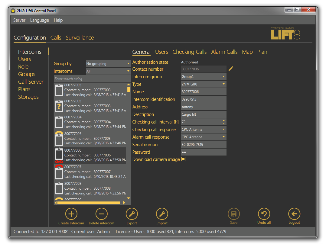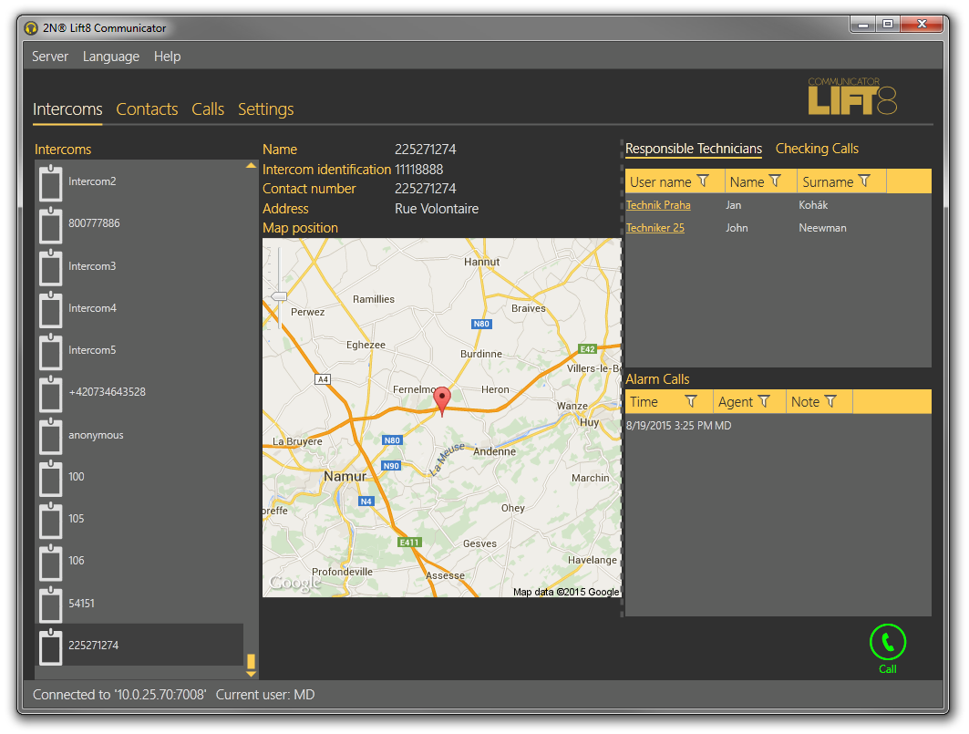 The 2N Lift8 Communicator application is intended for receiving alarm calls by the control room.