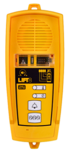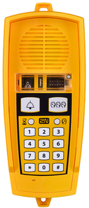 Audio unit for the cabin roof and shaft or cabin bottom. Robust yellow cover. HandsFree mode, ALARM button and Triphony, LED indicators. Not intended for use in the cabin.