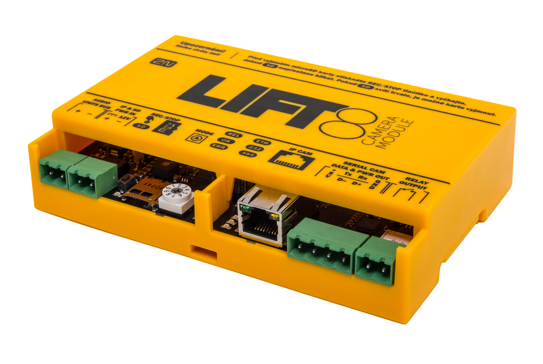 For camera connection (IP, RS232, RS485) to an elevator cabin. Every cabin in each shaft can contains a camera module (up to 8 camera modules in 2N Lift8).
