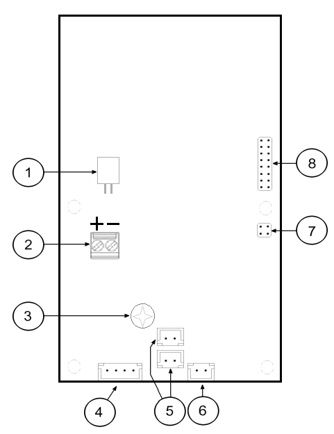 3 | Volume setting (trimmer) | 7 | Configuration jumper | ||||||