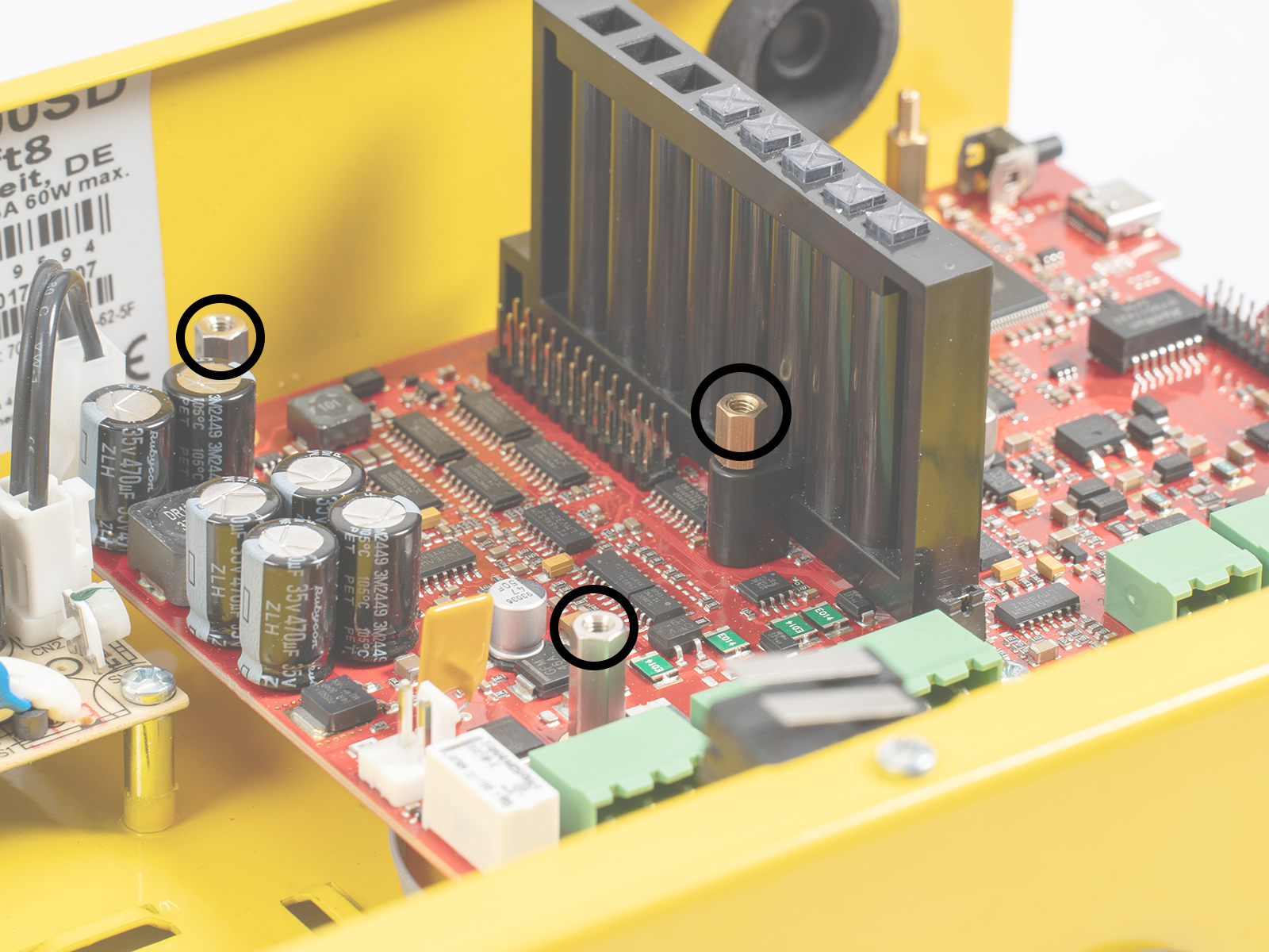 - Disconnect the back-up rechargeable batteries if connected (using the FASTON cable end pieces connecting the rechargeable batteries with the motherboard).