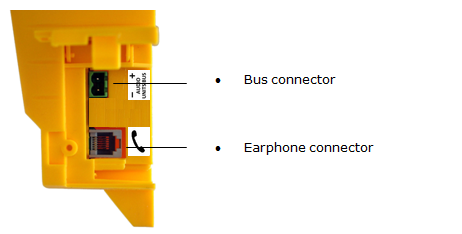 The audio unit has one connector for bus connection. The second RJ-11 connector is used for handset connection. Both the connectors are under the side doors.