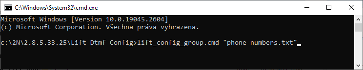 lift_config_group.cmd space "[phone numbers file]" (name of the phone number list text file including the .txt file type, in quotation marks)