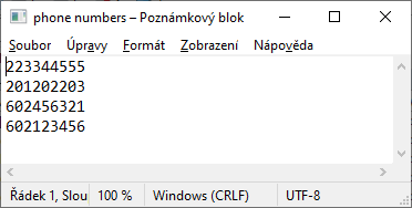 Example of Phone Number Text File