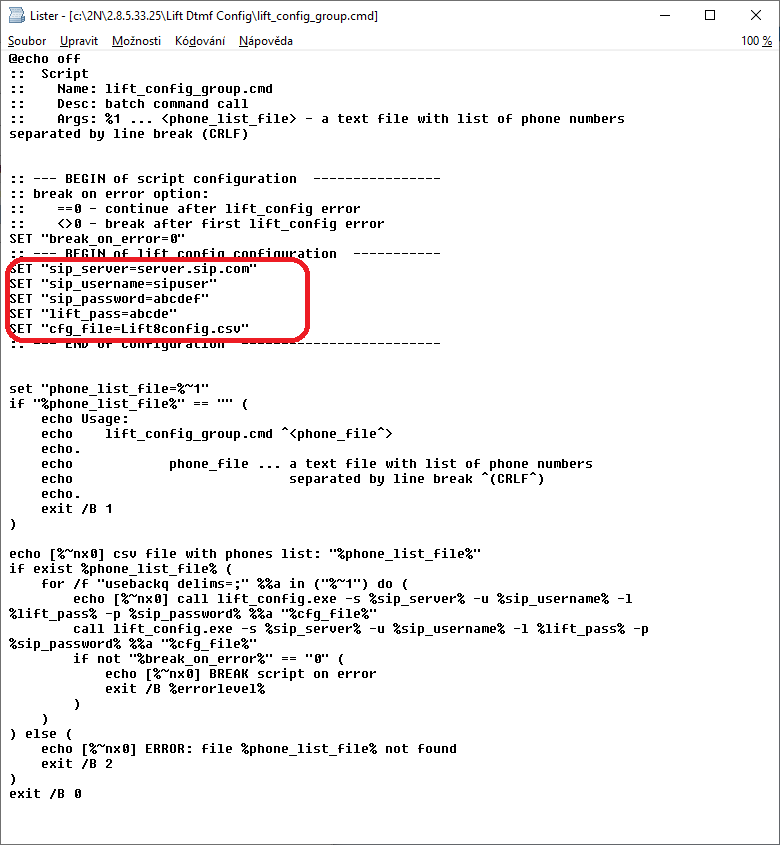 It is necessary to create a *.csv configuration file including the required parameters to program 2N Lift8 using Lift DTMF config successfully.