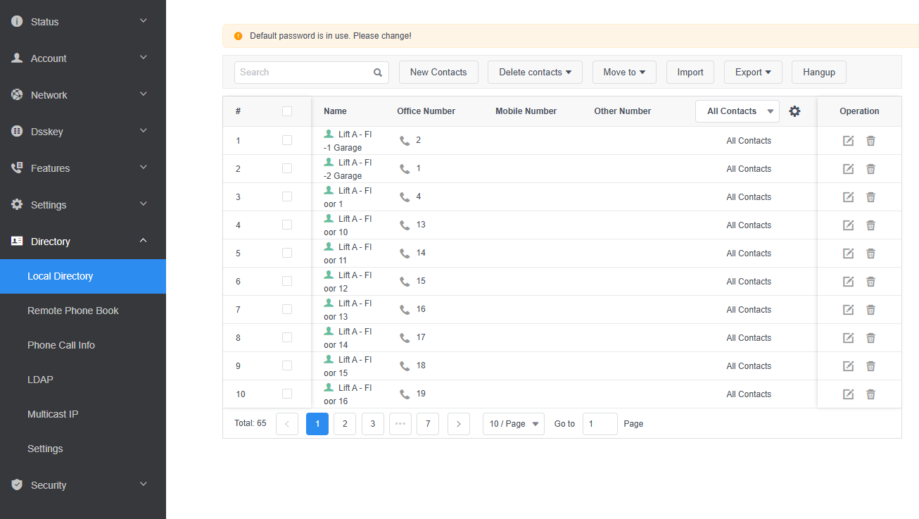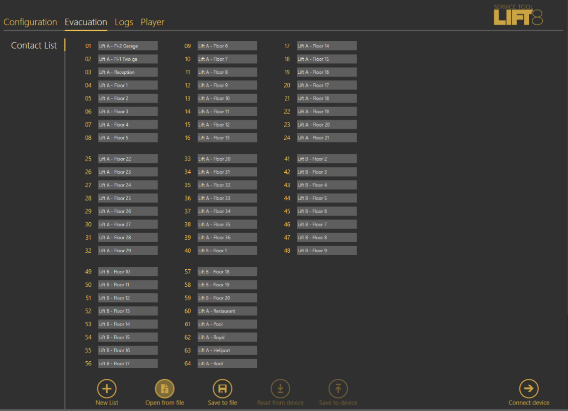 - Create a new contact for each floor or import the contact list from an XML file using the Service Tool.